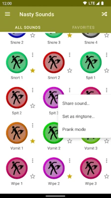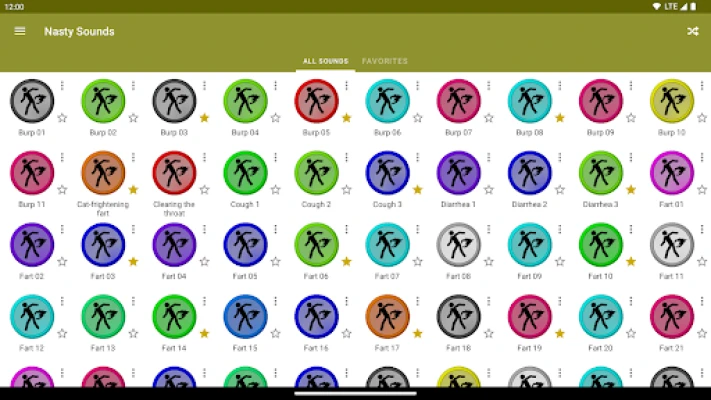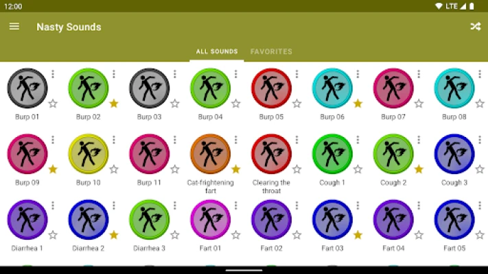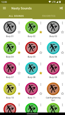 Nasty Sounds contains more than 70 nasty sounds (farts, burps, vomits, etc.) so you can listen to them at any time, without the need of a data connection!